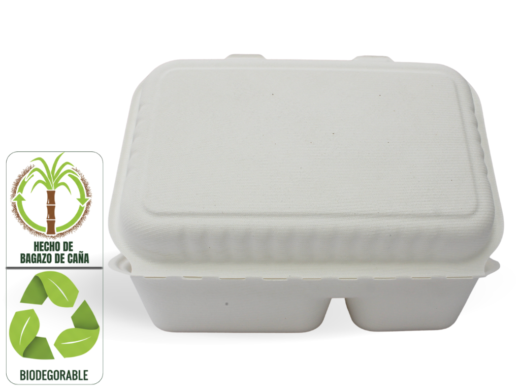 - Material: Bagazo de caña de azúcar (100% biodegradable).